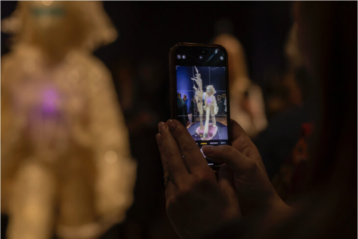 見ての通り、彼女は後頭部のみを提示し、その周りを時計を使って蝶や鳥が巡回しています。フランスの歴史家が提唱した、世界の歴史を短期、長期、見えない世界の三分割にした思想を参照したり、原子力の脅威を匂わすApocalypse(世界の終末)を援用してコンセプトに厚みを持たせています。これにより、時間の経過といかに現在が環境の変化や政治的問題などの重要な時であるかを示しいています。
