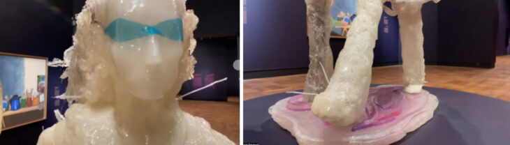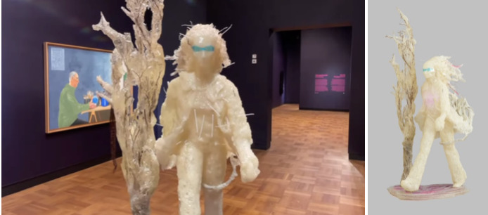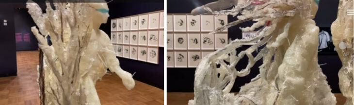 女性アーティスト、Zuzanna Janinの2つの自画像です。この彫刻のタイトル名は「スーザン・マグノリア」。まず、この歩き方の特徴は、彼女が16歳の時に制作、出演した映像「マイカ・スコウロンの狂気 」に基づいており、Zuzanna Janinのその他の作品にもよく参照されています。