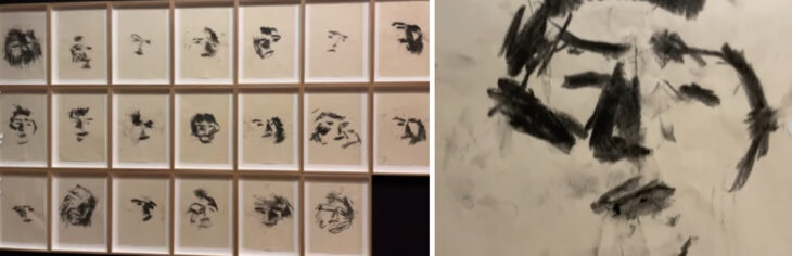 この作品の最も興味深い点はその制作手法にあります。実際の顔に版紙を当て、チャコールペンで顔の凹凸に沿って描かれるフロッタージュをするのです。これはキリストの聖骸布も意識しているように思われます。展覧会中には、この方法でこども達ともワークショップを行い、とても人気を博しました。それでは次の部屋へ行ってみます。