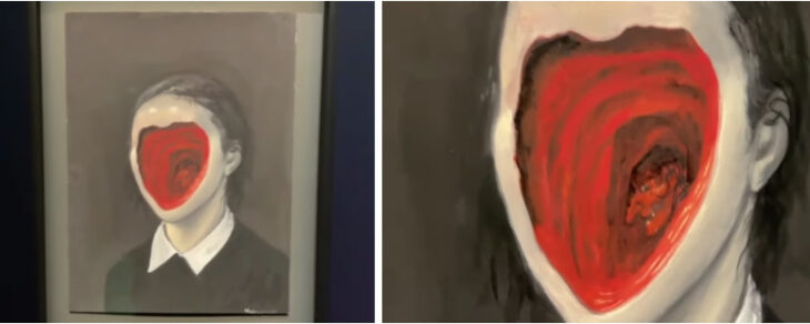 まず最初の作品を紹介します。こちらはBarbara Falenderの二つの自画像です。バーバラ・ファレンダーは、この展示で現存している作家の中では最も年配にあたる作家です。当展示は年齢、キャリアなど幅広い層の作家を招聘しています。