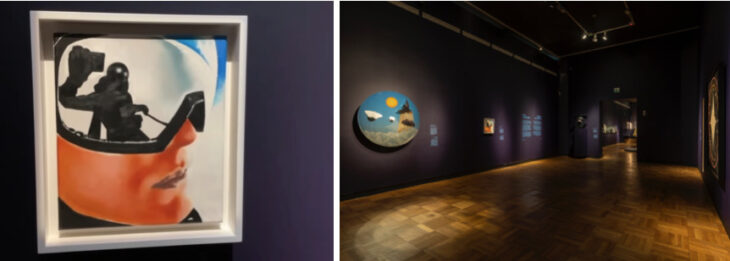 Wilhelm Sasnalも、普段はポートレート作品を制作しない作家ですが、今回このテーマでチャレンジしてくれました。見てわかるように、家族とスキーに行った時に、ゴーグルに反射した自分をセルフィーを、ポピュラーながらもキャンバスに油絵として描いたものです。彼が手に持っている棒とその立ち振る舞いは、馬に乗っているかのようにも見え、これはサスナルが敬愛する19世紀の作家ピアトル ミカロフスキーが頻繁に描いた馬と戦いのシーンを想起させると当博物館キュレーターは語ります。