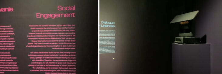 2つ目のテーマはDialogue with Likenessです。芸術家たちは自らのイメージとの繊細なゲームに取り組んでいて、これは作家が自身を隠すように隠喩的な方法でポートレートを表現していることから名付けられました。展示作品の中には、作者の不在を強調することで、伝統的な自画像の概念から脱却しようとするものさえあります。アーティストたちは文字通り鑑賞者から背を向け、誕生日の星の位置を観察したり、形而上学的な価値観とは対照的に身体の物理的性質を強調したりします。彼らは、例えば日常生活の音や身体で満たされた空間を用いて自画像を描くことができることさえも示しています。隠された、あるいは不在の顔は、イメージに普遍性をもたらし、マインドフルネス、内省、そして個人的な解釈を促しています。