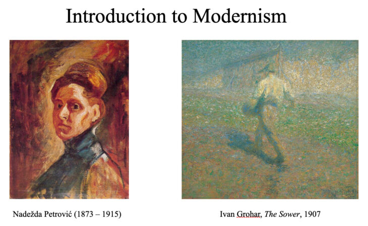 「モダニズム」は第一次世界大戦の前から同時多発的に始まりました。 セルビアでは、初めにモダニズムを取り入れたのは女流作家のNadežda Petrović (1873 – 1915)でした。彼女は後に、ユーゴスラビアの美術文化とフェミニズム両方を語る上で重要人物となりました。裕福な家庭で育った彼女は、西ヨーロッパへ旅をし、このような表現主義的な画風をユーゴスラビアに持ち込んだのです。