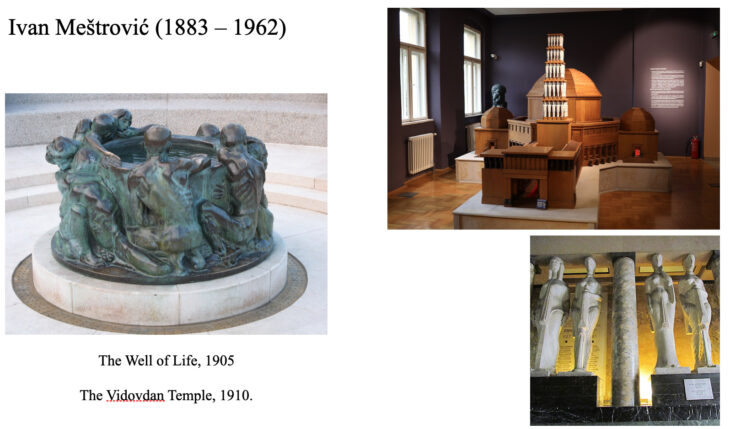 Ivan Meštrović (1883 – 1962)も最も重要な作家の一人で、作品を通してユーゴスラビアを多大に形成しました。彼は、この考えを 国内だけではなく、海外でも推進していきました。第一次世界大戦時のロンドンでのヴィクトリア・アルバート博物館やローマなど、様々な場所で、そのユーゴスラビアらしさを伝え、国際的評価も受けていった近代彫刻家なのです。