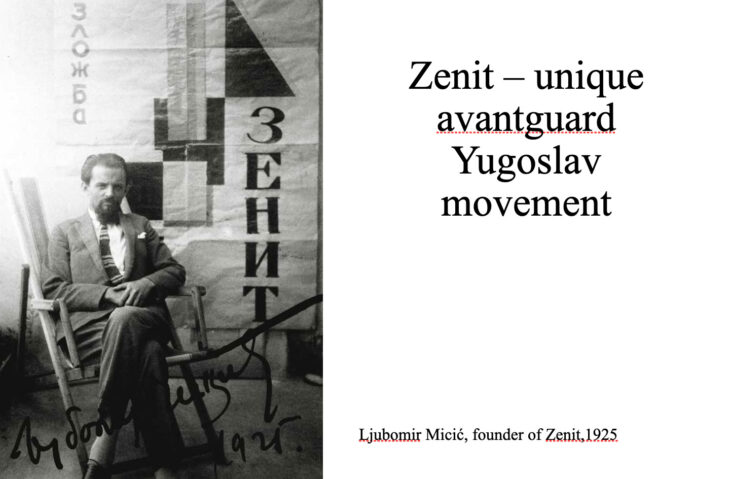 バルカンアートは世界で最高位を二度経験しています。一度目は、 史前時代、そして二回目がこのZenit運動の時代だと思っています。彼らはフランスとスイスにダダイズム到来した後すぐ、Ljubomir Micićはユーゴスラビアにいち早くそれを取り入れ、ユーゴスラビアで重要な都市、ベルグラードとザグレブに文化的な人材を集め、Zenitというマガジンを発行し始めました。“ユーゴスラビアのダダイズム”として他国と共同展なども開催しました。