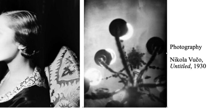 次は、「写真」に移ります。写真家ではNikola Vučoの名前だけをとりあえずあげておきます。なぜニコラ・ヴォッチョかというと、当時パリで開催されたシュールレアリズム展の看板画像として、彼女の作品が選ばれているからです。彼女の作品はアンドレア・ブルトンなどと同等に評価されています。実験的な写真などを繰り返し続け、セルビアやユーゴスラビア芸術を飛び越えてた作家です。