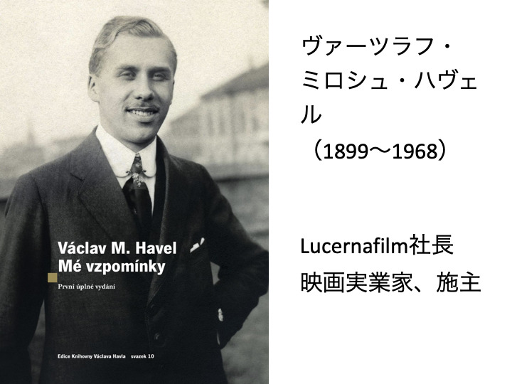 大統領のバーツラフ・ハベルは元々劇作家でした。チェコスロバキアは、いわゆるベルリンの壁の崩壊に伴い、自由になっていきました。ハベル一族というのは、ものすごく文化人と実業家が多く、このヴァーツラフ・ミロシュ・ハベルはルツェルナフィルムという大きな会社を作っています。また、彼は、戦争中第二次大戦中にドイツに強制労働に行かないといけないチェコ人の若者に、映画作りの人材を雇用して、多くの人を救った功労者の一人です。
