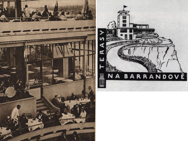 これがバランドフ映画製作所の一部です。近代建築に、オープン喫茶店、レストランなどがを、モルダウ川沿いの崖の上に建てられています。