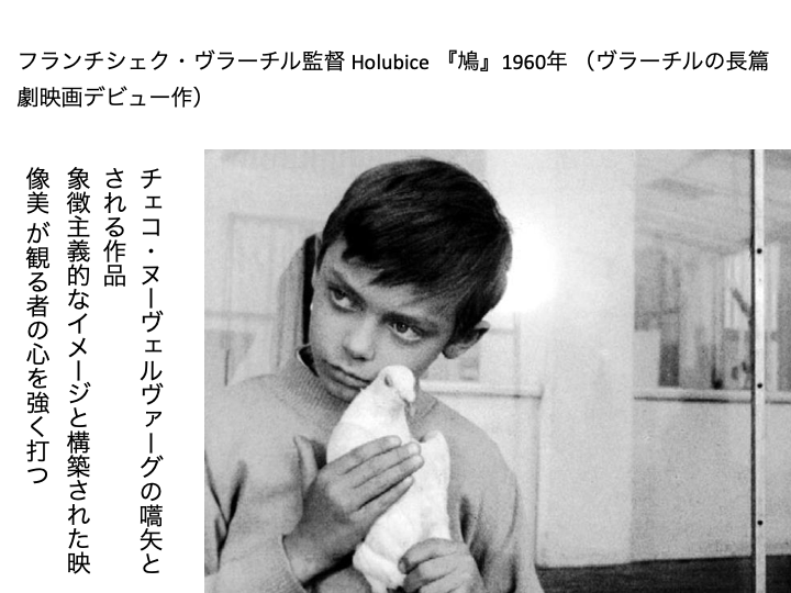 チェコのヌーベルバーグの第一号と言われているのが、このブラーチル監督の『ハト』です。常に面白い象徴主義的なイメージで、セリフはあまりないのです。それこそ、見ている方の心を強く打つというか、和ませる、何とも言えない面白い作品なのですね。