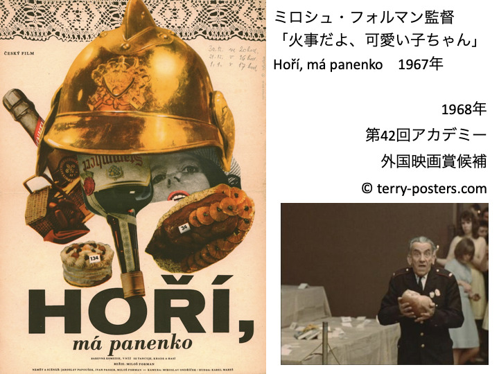 67年の『Hoří, má panenko』は本当に伝説的な映画です。消防団の映画で、彼らが舞踏会を行って、いろんなことが起きる内容です。それが、コメディなのですが、当時の社会の非常に強い批判、また、人間の風潮を強く批判する映画で、笑っていいかどうかというのは実はよくわからないのです。チェコのヌーベルバーグは、非常にブラックユーモアがたっぷりあるのです。