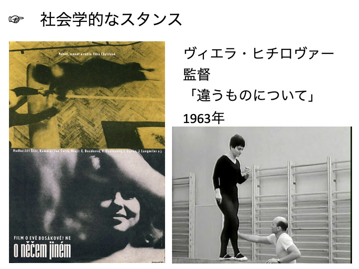 これは、先ほどから登場しているVěra Chytilová監督の1963年の社会学的なスタンスが強い『O něčem jiném』(違うものについて)という体操選手についての映画です。
