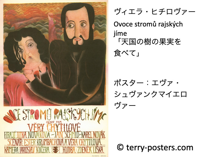 それからまた、Vera Chytilová(ヒヴィエラ・ヒチロヴァー)監督の作品『Ovoce stromů rajských jíme』(天国の樹の果実を食べて)で、このポスターはなんと、ヤン・シュヴァンクマイエルの妻、シュルエアリズムの画家だったEva Švankmajerováが担当しています。