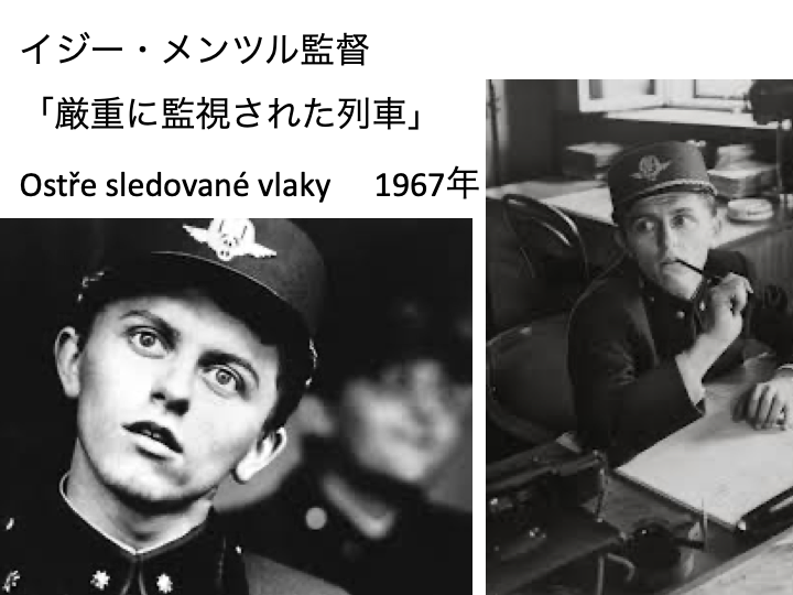 その中で一番有名 世界的に有名なのはこれはJiří Menzel(イジー・メンツル)監督の『Ostře sledované vlaky』(厳重に監視された列車)でしょう。非常に悲劇的な映画で、若い駅員さんの話です。この映画は、1967年、第40回アカデミー賞を受賞しています。ですから、一番最初に『大通りの店』、そしてフォアマンの『火事だよ、かわいちゃん』、そしてこの映画が立て続けて受賞の対象になったわけです。