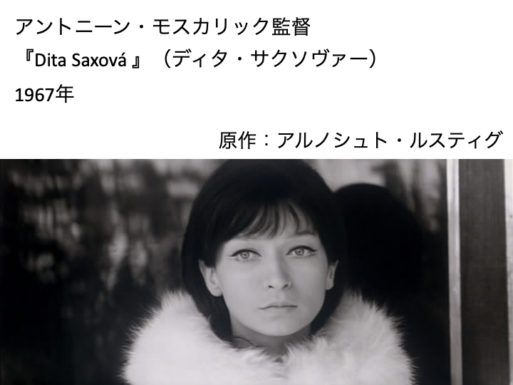 ユダヤ人の虐殺などをテーマに、戦争を生き残ったとても美しいユダヤ人女性の話『Dita Saxová』です。非常に心を和み、悲しい、しかしちょっとシュールな映画で、原作はアルノストルスティックです。