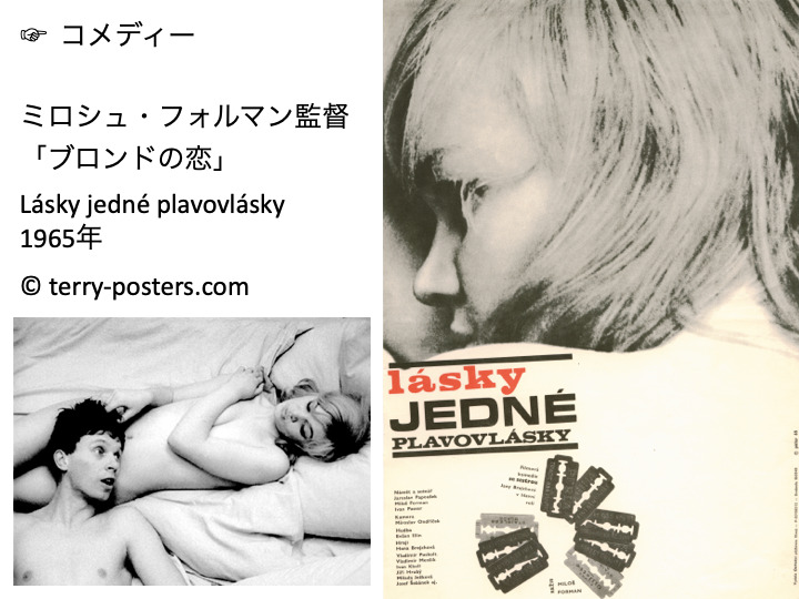 戦争テーマは終え、ミロシュフォルマンの『ブロンドの恋が作られて』です。 恋人の話であり、また非常にコメディとして輝き、アメリカでも非常に人気作品になったと聞いています。こちらもアカデミー賞の候補になりました。