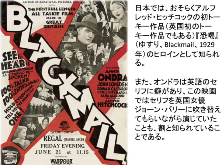 おそらくこちらが日本では初トーキー作品となるアルフレッド・ヒッチコックのです。これに出演しているアニー・オンドラはチェコ人ですので、非常に英語にアクセントがあり、別の人に吹き替えてもらったという話があります。